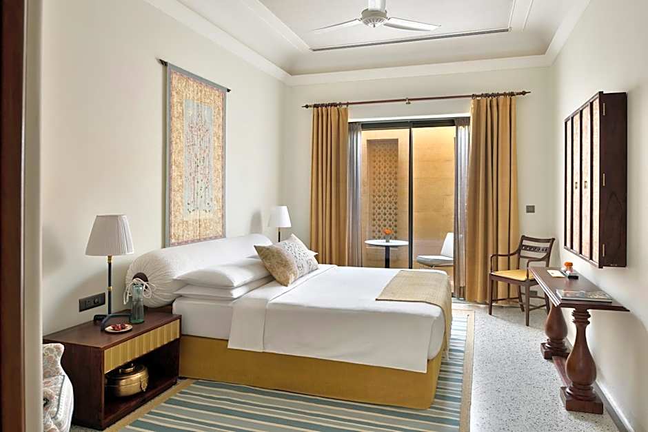 Experience royal living in the well-appointed rooms at . Choose from a range of room types to suit your needs and preferences. From the cozy Fort Twin Room with twin beds, perfect for two adults, to the opulent Thar Haveli Suite that can accommodate up to six adults, there's a room for every traveler. All rooms are smoke-free and come equipped with modern amenities including air conditioning, private bathrooms, and flat-screen TVs.